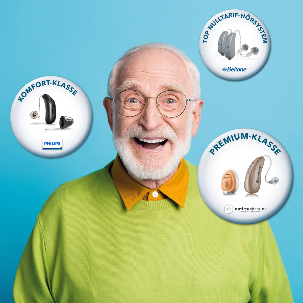 Hinweis: Klicken Sie auf die Bilder, um die Hörsystem Modelle getragen zu sehen.